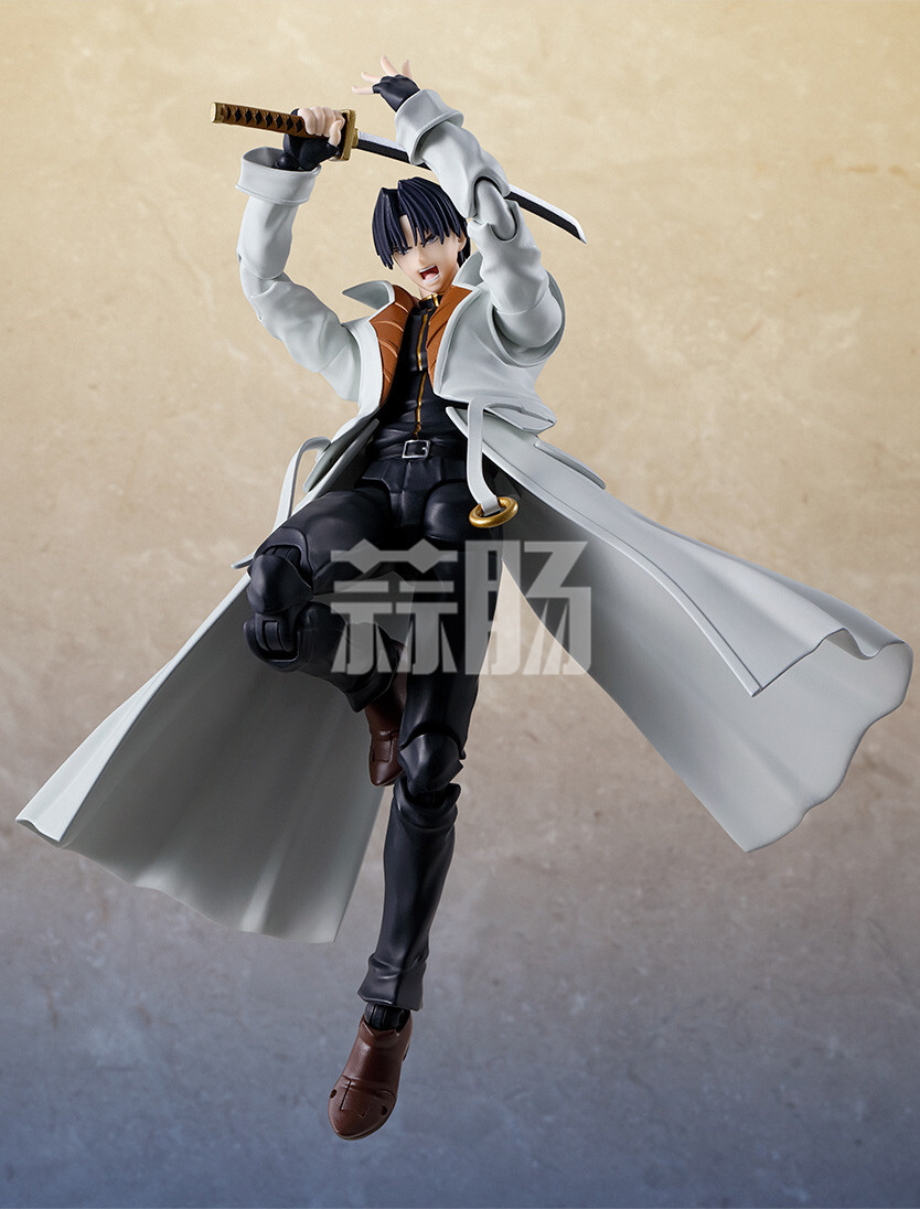 SHF 四乃森蒼紫 可動人偶全高為16.5厘米。江湖成御庭番眾的首領,因部下之死而誓殺劍心的修羅劍士四乃森蒼紫以動畫人設造型進行立體化。黑發搭配上標志的長劉海,白色的外套采用了分段設計保證人偶可動性。同時包括膝蓋等關節也采用了伸縮機制,人偶附帶有三對替換手型,長刀、四種表情替換件。